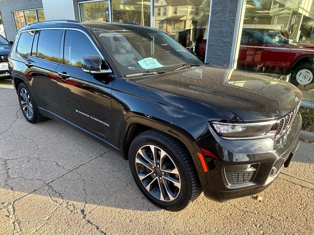 Diamond Black Crystal Pearlcoat 2022 Jeep Grand Cherokee L Overland 4WD 8-Speed Automatic HEMI 5.7L V8 Multi Displacement VVT 10 Speakers, 10.1" Touchscreen Display, 2nd Row 60/40 Bench w/Manual Tip/Slide, 2nd Row Seat Center Armrest/Cupholders, 3 Rear Seat Head Restraints, 3rd row seats: split-bench, 4-Wheel Disc Brakes, 4G LTE Wi-Fi Hot Spot, 7-Passenger Seating, Active Cruise Control, Active Noise Control System, Adaptive suspension, Air Conditioning, AM/FM radio: SiriusXM with 360L, Apple CarPlay, Audio memory, Auto High-beam Headlights, Auto-dimming door mirrors, Auto-dimming Rear-View mirror, Auto-leveling suspension, Automatic temperature control, Center Rear 3-Point Seat Belt, Compass, Delay-off headlights, Dual front impact airbags, Dual front side impact airbags, Emergency communication system, Front Bucket Seats, Front dual zone A/C, Front fog lights, Front reading lights, Fully automatic headlights, GPS Navigation, HD Radio, Heated door mirrors, Heated front seats, Heated rear seats, Heated steering wheel, Illuminated entry, Integrated Voice Command w/Bluetooth, Leather steering wheel, Low tire pressure warning, Memory seat, Navigation System, Occupant sensing airbag, Outside temperature display, Overhead console, Panic alarm, Passenger vanity mirror, Power door mirrors, Power driver seat, Power Fold Seatbacks, Power Liftgate, Power moonroof, Power passenger seat, Power steering, Power windows, Quick Order Package 25N, Rear air conditioning, Rear reading lights, Rear window defroster, Remote keyless entry, Security system, SiriusXM Satellite Radio, Speed control, Split folding rear seat, Steering wheel mounted audio controls, Tachometer, Telescoping steering wheel, Tilt steering wheel, Traction control, Trip computer, Turn signal indicator mirrors, Ventilated front seats, Voltmeter.